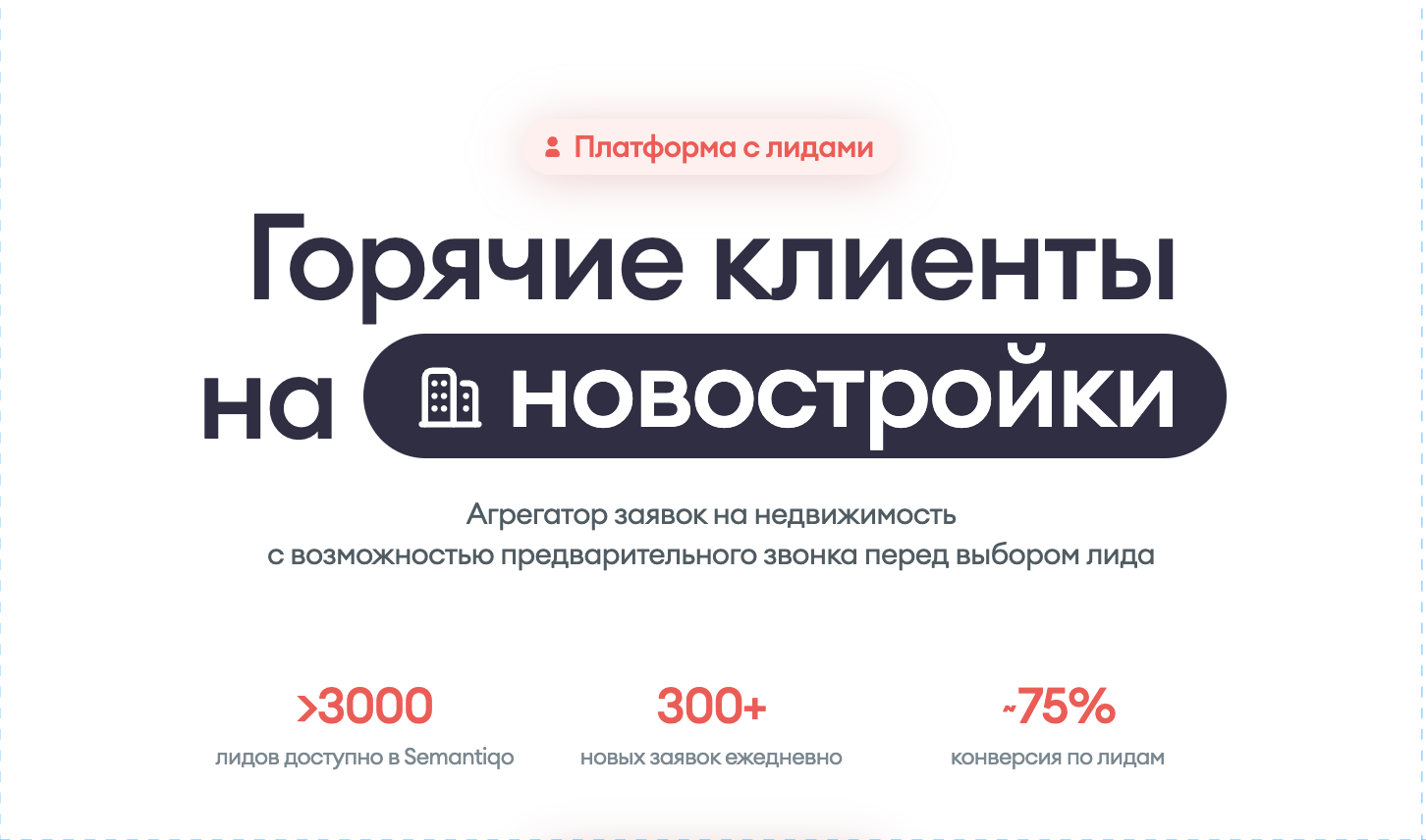 Именно поэтому всё большую популярность набирают лиды на новостройки Семантико, где акцент делается на интерес к первичному рынку и предварительную квалификацию клиента. Такой формат позволяет специалистам работать с более осознанной аудиторией и выстраивать диалог на уровне консультации, а не холодных продаж.