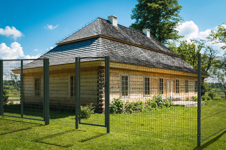 - Прозрачность и легкость. В отличие от глухих заборов, сетчатое ограждение не создает ветровой нагрузки, не затеняет участок и позволяет сохранять визуальный контакт с окружающим пространством, что важно для восприятия ландшафта.